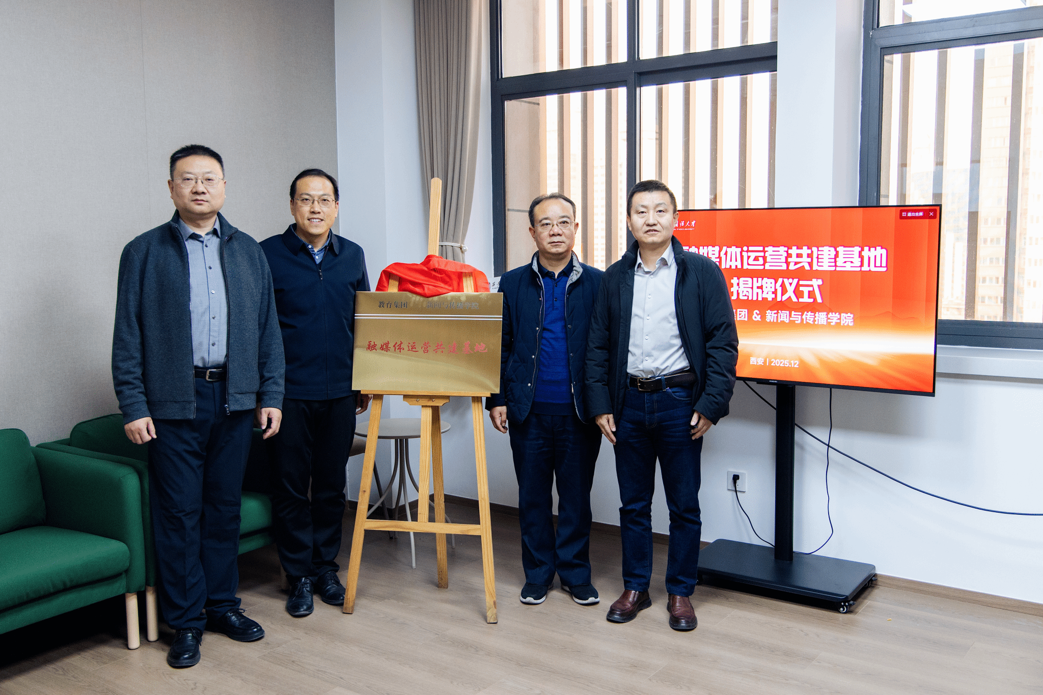 仪式上,双方共同为“融媒体运营共建基地”揭牌。新闻与传播学院与西安优联卓展教育科技有限公司现场签署战略合作协议。根据协议,双方将在融媒体运营、学生实习实训、跨学院协作及学生联合培养等方面开展合作,旨在整合教育集团的产业实践资源与新闻学院的教学科研优势,共建集内容生产、人才培养与项目孵化于一体的实践平台。