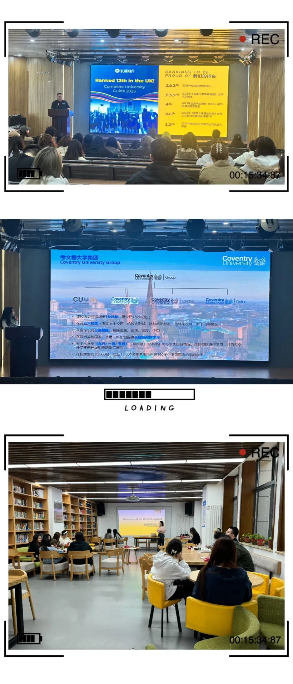 2025年9月23日至25日,英国萨里大学、考文垂大学、西英格兰大学陆续在国际学院开展宣讲活动。此次活动旨在为SQA 3+1项目学生介绍各院校详细信息,包括专业设置、入学要求、住宿生活、奖学金等一系列内容。目的是辅助学生们更好地了解并认识各院校,为同学们的留学择校提供更多帮助。